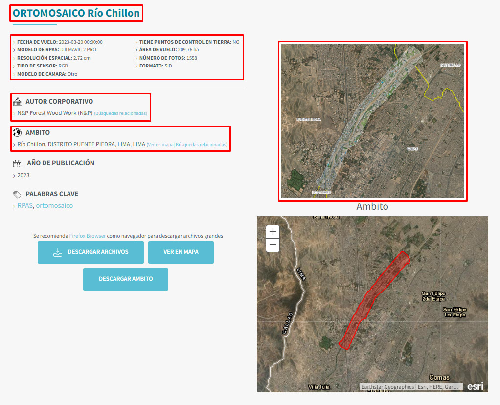 Ortomosaico georreferenciado en Google Earth.